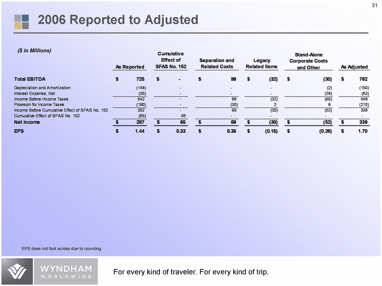| ($ in Millions) 2006 Reported to Adjusted EPS does not foot across due to rounding. |