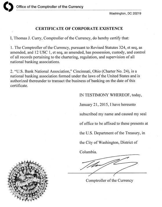 3. A copy of the certificate of authority of the Trustee to exercise corporate trust powers, attached as Exhibit 3.